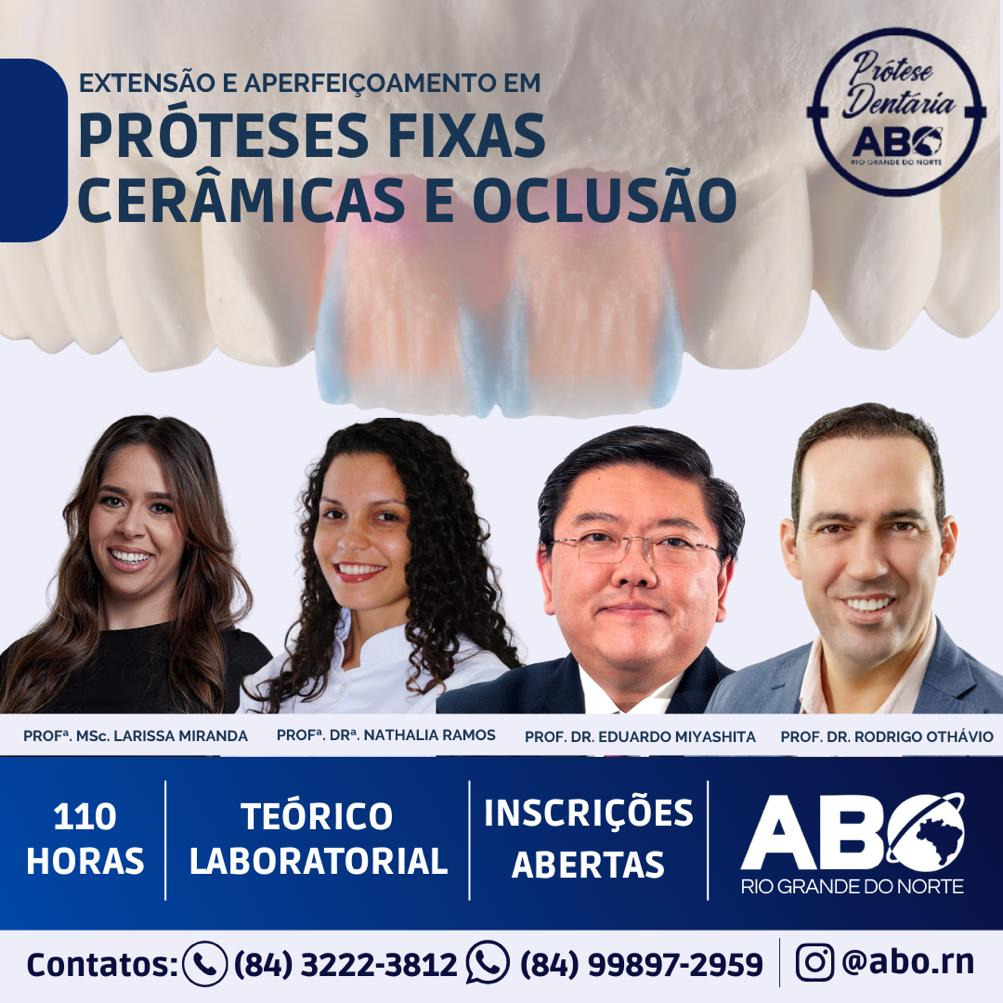 Além das suas atividades na UFRN, ele atua como Coordenador do curso de Especialização em Prótese Dentária da Associação Brasileira de Odontologia/ABORN e Colaborador do Programa de Pós-Graduação em Prótese Dentária da UNESP/SJC. Dr. Rodrigo Othávio também é Especialista em Implante pela NAP ODONTO – São Paulo/SP e possui Pós-graduação em Disfunção Têmporo-mandibular (DTM) e Acupuntura na UNESP – São José dos Campos/SP.